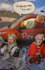 In de foyers van de theaters zetten we bij elke voorstelling een prachtige (uiteraard weer door onze vaste vormgever Menno Schreuder ontworpen) selfiewand neer. Nu kun je mét Pé & Rinus op de foto, nog wel ín die Canta, en ook nog eens ín die Hoornse Plas!