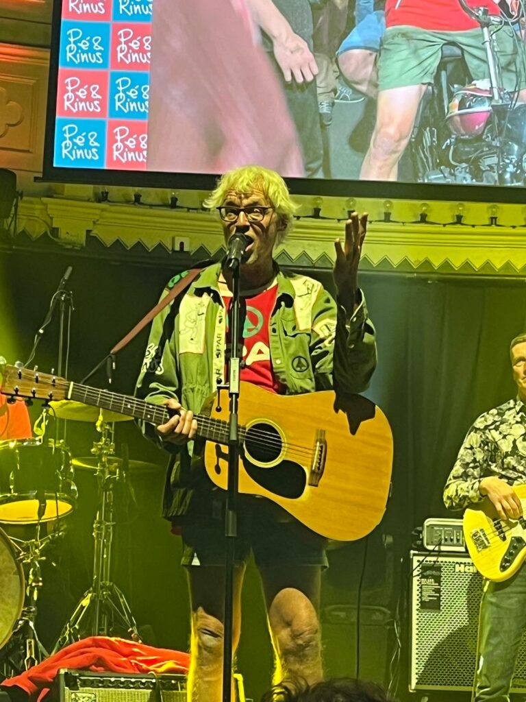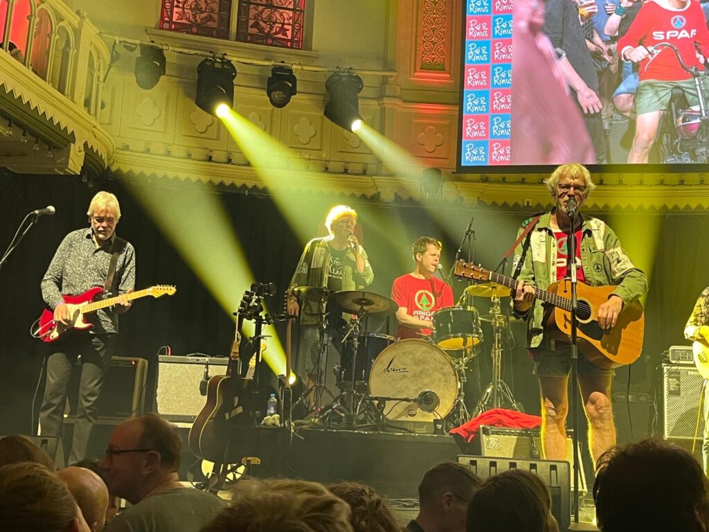 Het werd een historische dag, voor ons dan. De Amsterdamse poptempel was ingenomen door anderhalfduizend woeste Groningse fans, uitgedost met Groningse en SPAR-vlaggen, FC Groningenshirts, zelfgemaakte Sparshirts of shirts met framenummer 1422055 achterop. Het geluid was weer perfect, het licht mooi, de projecties doeltreffend, de band speelde zoals zs nog nooit gespeeld had (of beter gezegd: net zo fantastisch als ze altijd speelt!) en met het hele Team Pé & Rinus zetten we negen kwartier lang Paradiso in vuur en vlam!