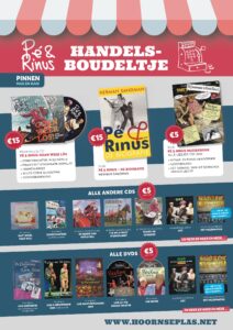 Maar verder zijn zo ongeveer alle oude CDs, DVDs en ander spul van 45 jaar Pé & Rinus én De Bende hier te koop voor slechts 5 euri!